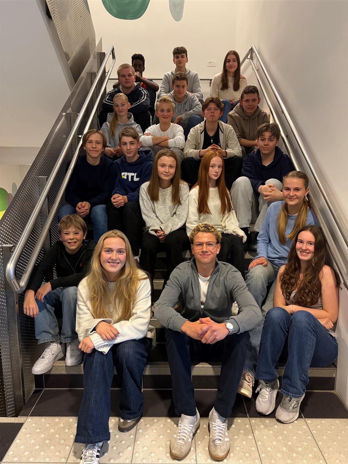 På bildet til venstre sit Helene og Birk i midten på fremste trappetrinn.