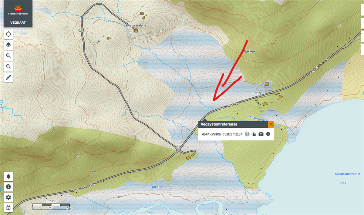 Stad: 2167m frå FV5692 Øybostvegen ved Kvamsgrova sjå vedlagt bilde
