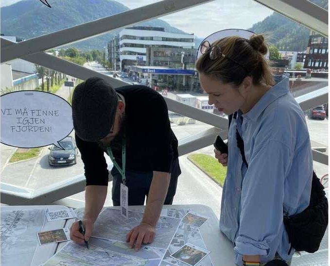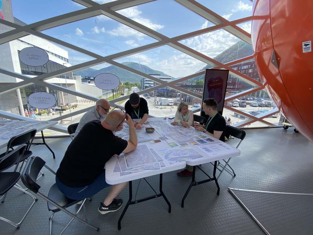 Framtidsverkstad om StorehagenLaurdag 14. juni gjennomførte vi ein Bylab på Sotebrua på Alti kjøpesenter der vi ønskte diskusjon og innspel om framtidig utvikling og bruk av Storehagen. Kommunen engasjerte Arki Arkitektar i førebuinga og gjennomføringa av verkstaden.Vi hadde kart, så dei som møtte opp kunne teikne og kommentere sine innspel. Det var òg mogleg å sende skriftelege innspel til ei digital postkasse før, under og etter verkstaden.Vi fekk mange gode innspel, og vil bli laga ein medverknadsrapport som samlar opp innspela frå alle medverknadsmetodane vi brukar knytt til sentrumsplanen for Førde.Oppsummering av hovudtema på innspel vi fekk inn om transformasjon av Storehagen:1. Grøntareal og parkutvikling Mange ønskjer meir grønt i sentrum: parker, tre, blomster, og soner for leik og rekreasjon. Det blir etterlyst:Leikeplassar for barnUrbane grøne lungerPlassar for piknik og opphaldNaturvennleg utforming 2. Fotgjengarvennleg og bilfritt sentrum Det er eit sterkt ønske om å redusere biltrafikk og parkering i overflata:Gågate eller miljøgate gjennom StorehagenParkeringshus under bakkenTilrettelegging for syklistar og mjuke trafikkantarMeir skjerming mot støy og trafikk 3. Bevaring og gjenbruk av gamle bygg Fleire peikar på verdien av å ta vare på historiske bygg som Firda Billag og verkstadbygga:Inspirasjon frå Kødbyen i KøbenhavnBruk til kaféar, mathall, kultur og næringIdentitetsskapande og arkitektonisk verdi Sist endra 17.02.2026 10.23